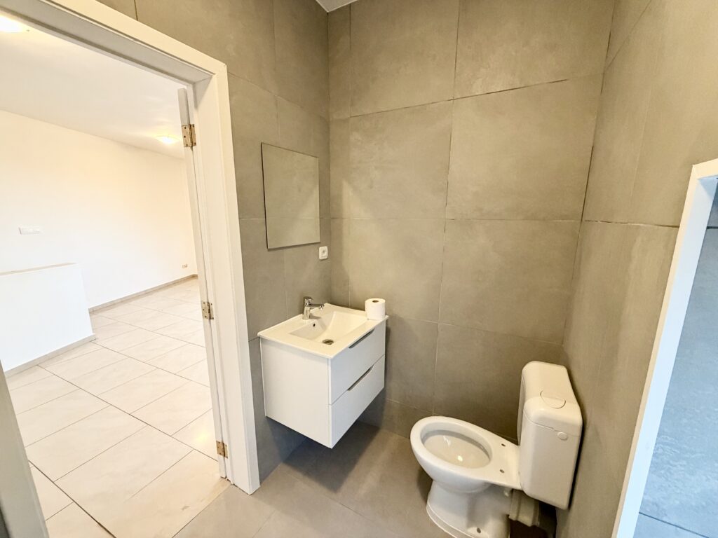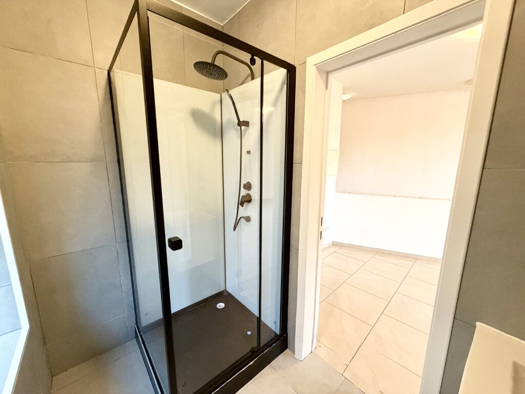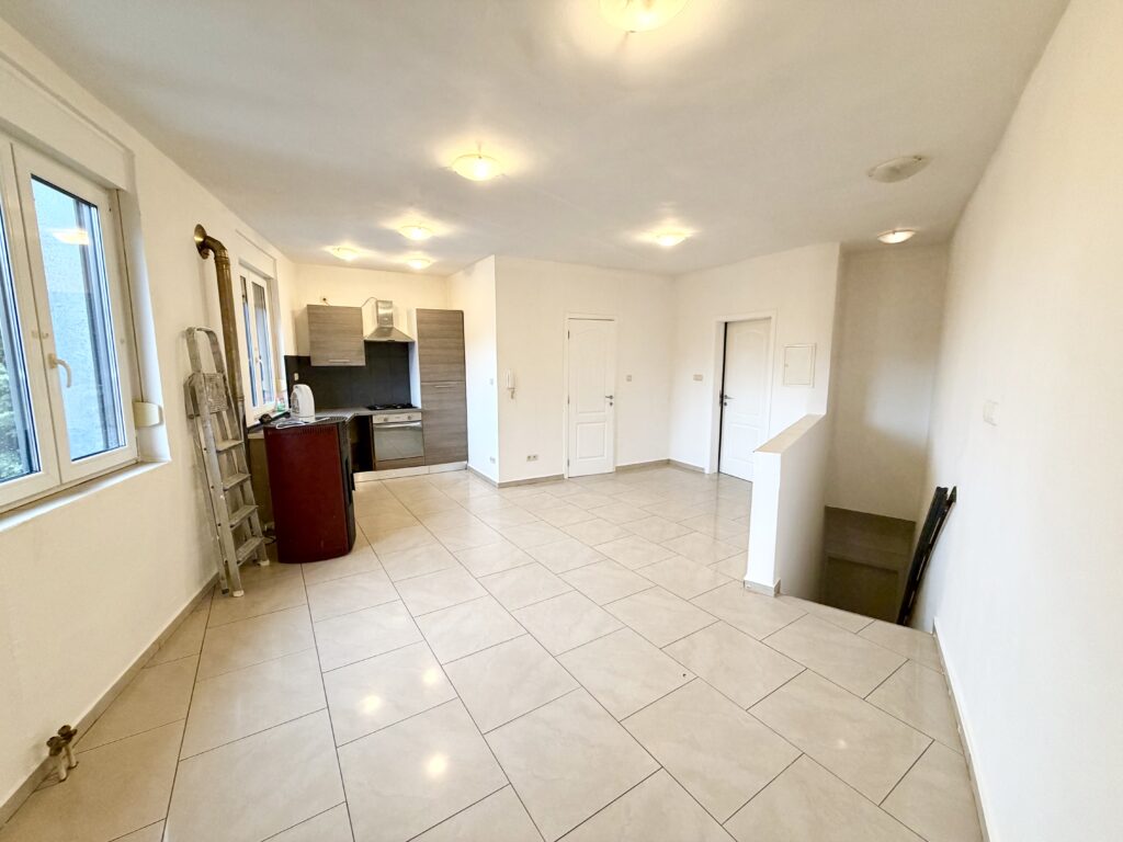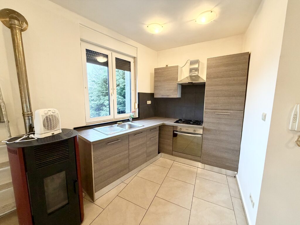 Séjour ouvert, coin cuisine, 1 chambre, salle de bain avec douche, WC et lavabo, châssis double vitrage, chauffage central aux pellets, 55 m² de superficie plancher chauffé, proche de toutes commodités.