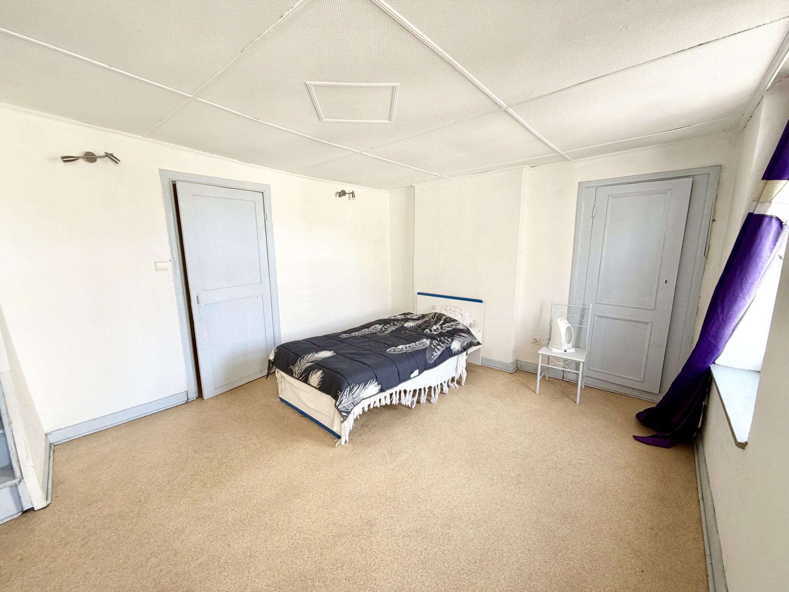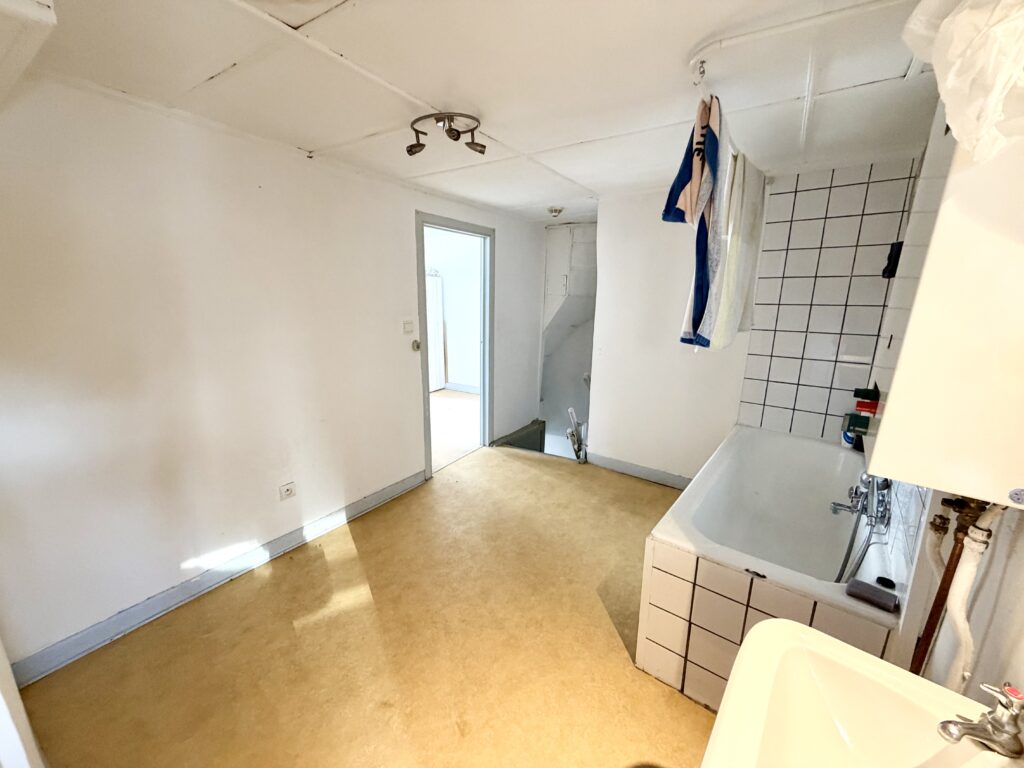 Séjour, cuisine, salle de bain, 1 chambre, grenier aménageable, cour + remise, cave, électricité conforme, châssis simple et double vitrage, 53 m² de surface de plancher chauffé.