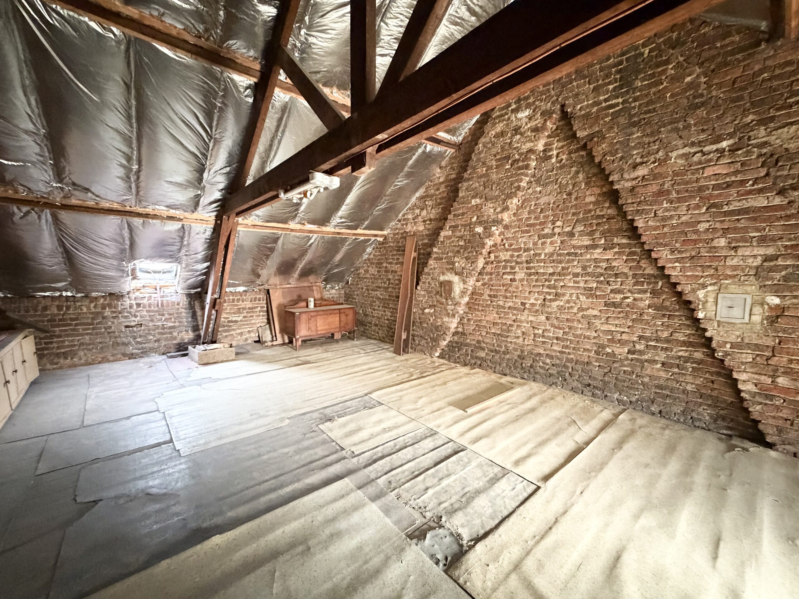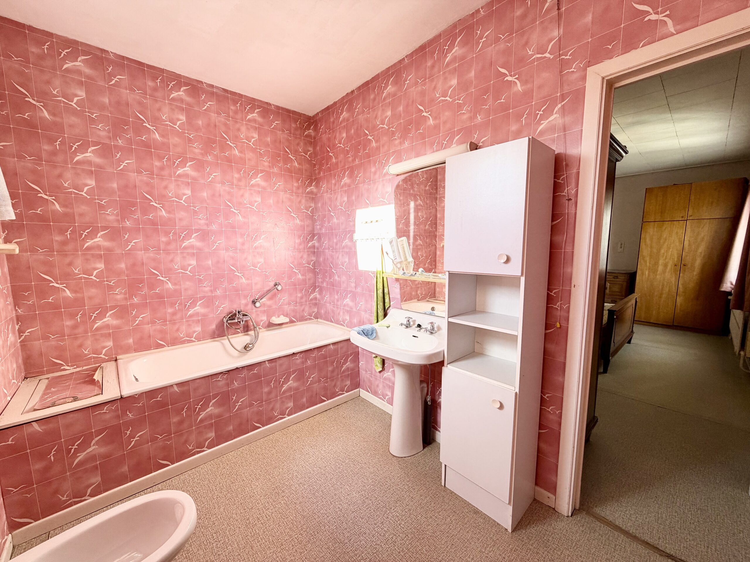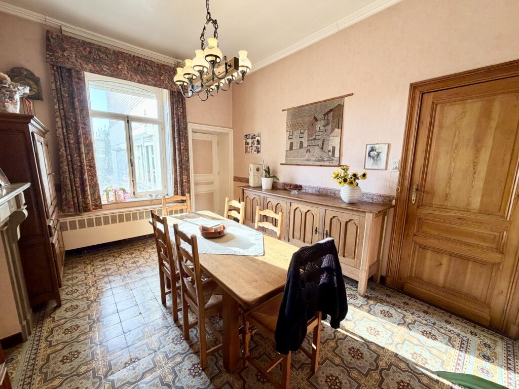 Hall d’entrée, salon, salle à manger, cuisine, buanderie, 4 chambres, salle de bain, terrasse + jardin, passage latéral, toiture en bon état et isolée (16 cm), châssis double vitrage + simple vitrage, chauffage central au gaz de ville, 234 m² de surface plancher chauffé d’après PEB.