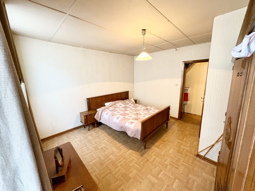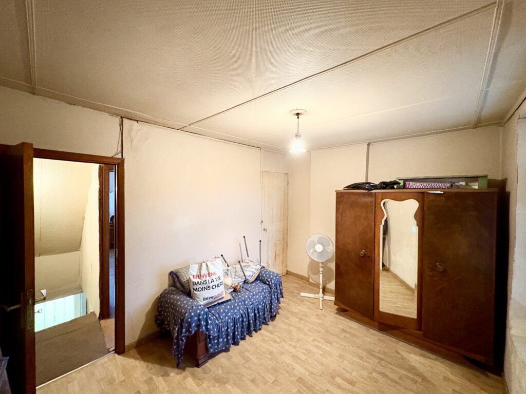 Séjour, cuisine, salle de bain, hall de nuit, 2 chambres, grenier aménageable, cave.